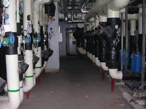 ②水泵的振動(dòng)傳遞到管道上,管道又通過與之相連接的吊架、托架和墻面而傳遞到平頂、地面和墻面,引起它們振動(dòng)而輻射聲波。