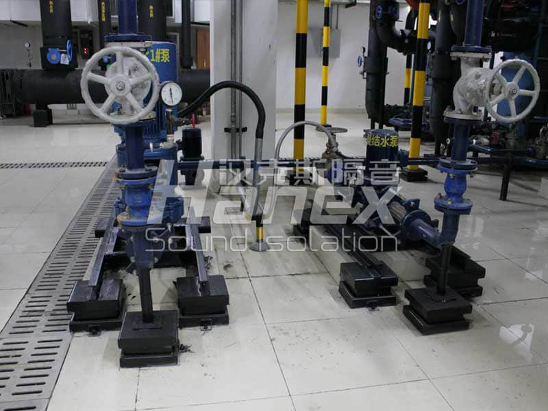 5、 從國(guó)內(nèi)已有的案例與我們漢克斯隔音的實(shí)踐來(lái)看,地下室設(shè)備房?jī)?nèi)減振降噪,通常是通過(guò)支架全部落地,同時(shí)對(duì)支架與設(shè)備基礎(chǔ)進(jìn)行減振來(lái)處理(如紹興人民醫(yī)院住院部的案例);